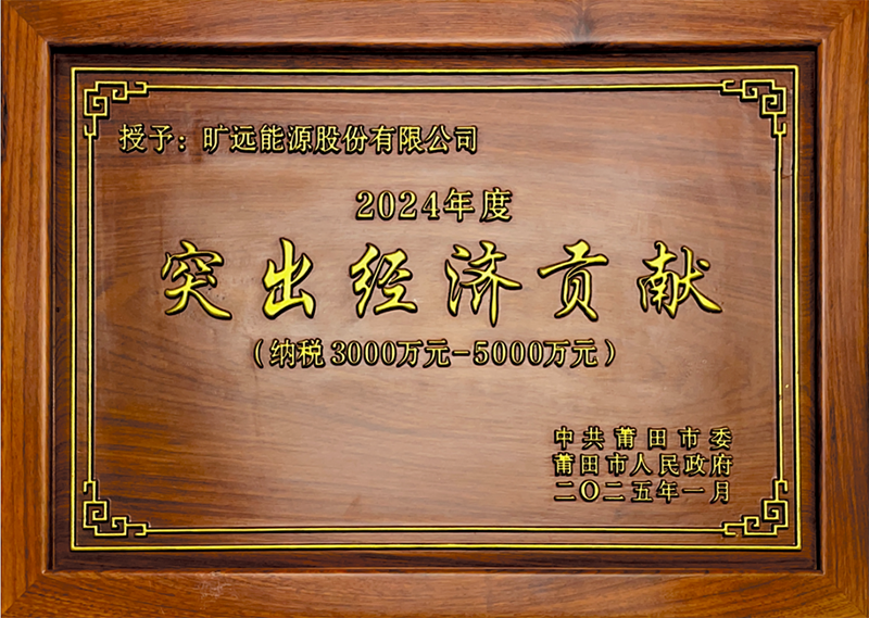 2025年1月 曠遠(yuǎn)能源股份有限公司被中共莆田市委、莆田市人民政府授予“2024年度突出經(jīng)濟(jì)貢獻(xiàn)(納稅3000萬元-5000萬元)”榮譽(yù)
